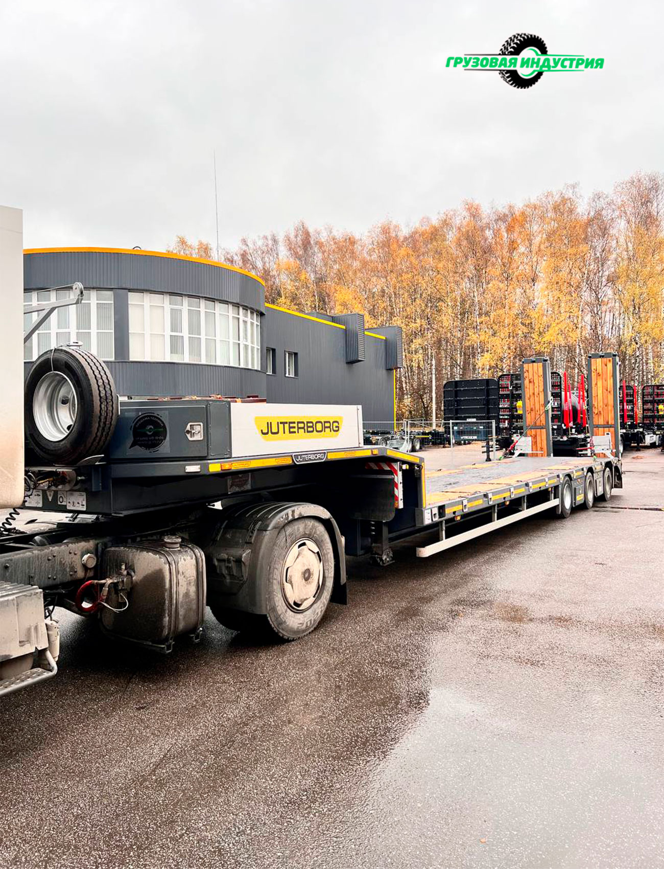 Отгрузка полуприцепа трала Juterborg JTB-40 с гидравлическими аппарелями двойного сложения с поворотной осью в г. Краснодар