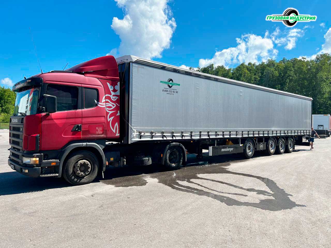 Отгрузка сцепки Scania 4x2 и шторного полуприцепа Meusburger Новтрак SP-451в г. Псков.